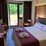 توفّر مكيف الهواء بالإضافة إلى الثلاجة الصغيرة المزودة بالبار الراحة في الغرفة في Balneario Valle Del Jerte.